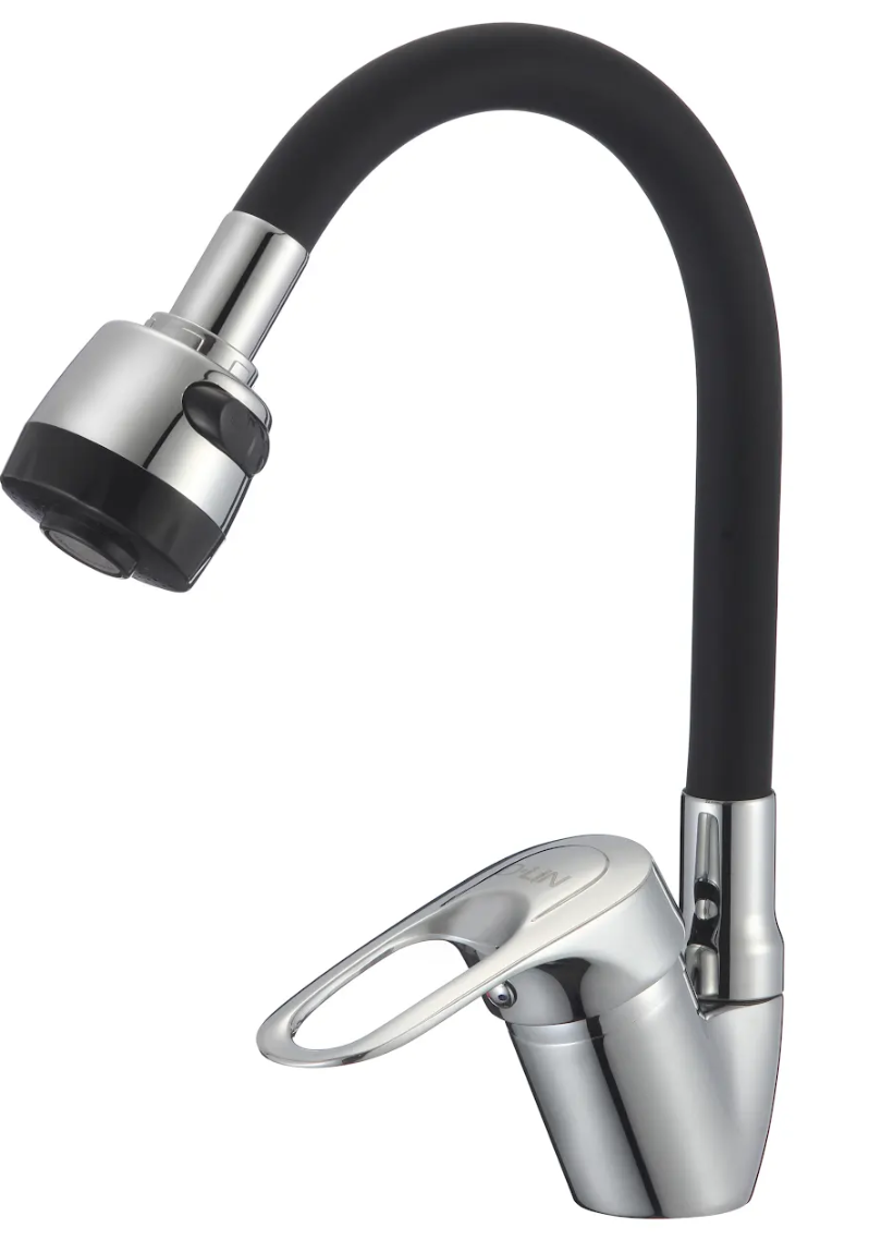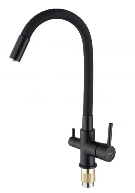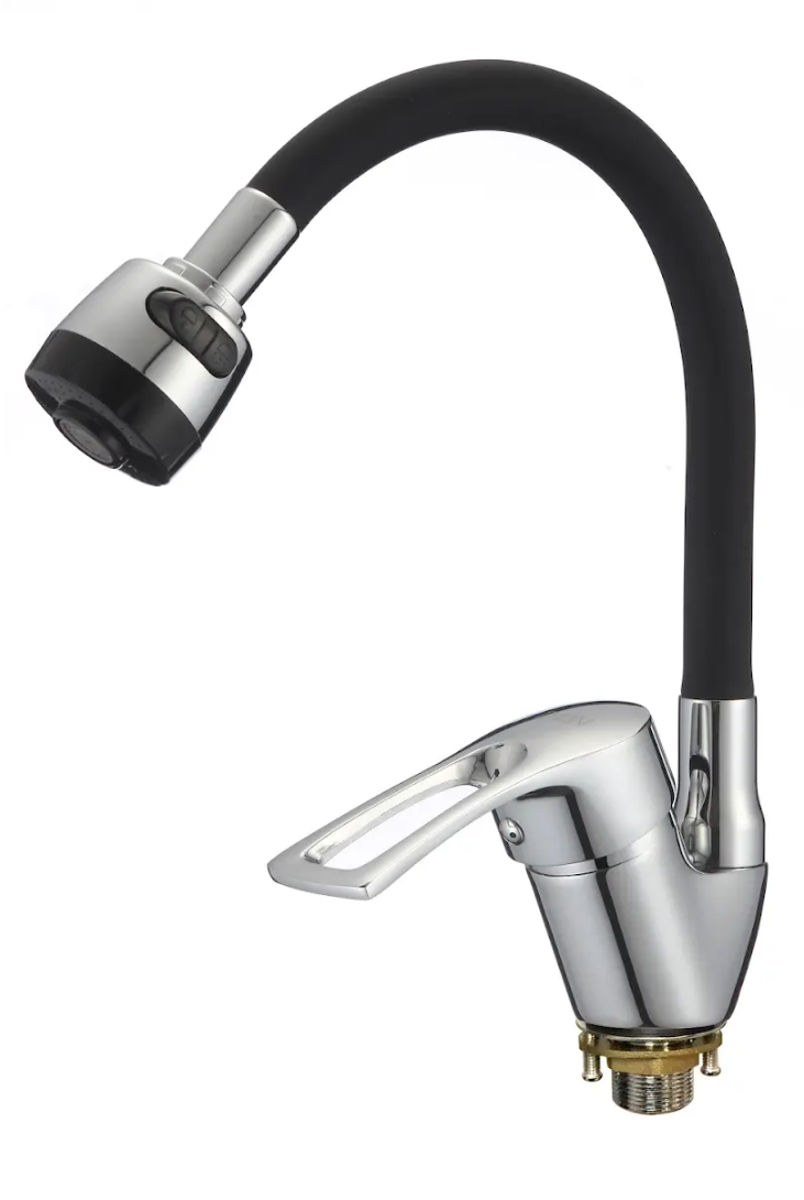 Смеситель для кухни с силиконовым изливом, чёрный+хром, D-Lin D150422-1T