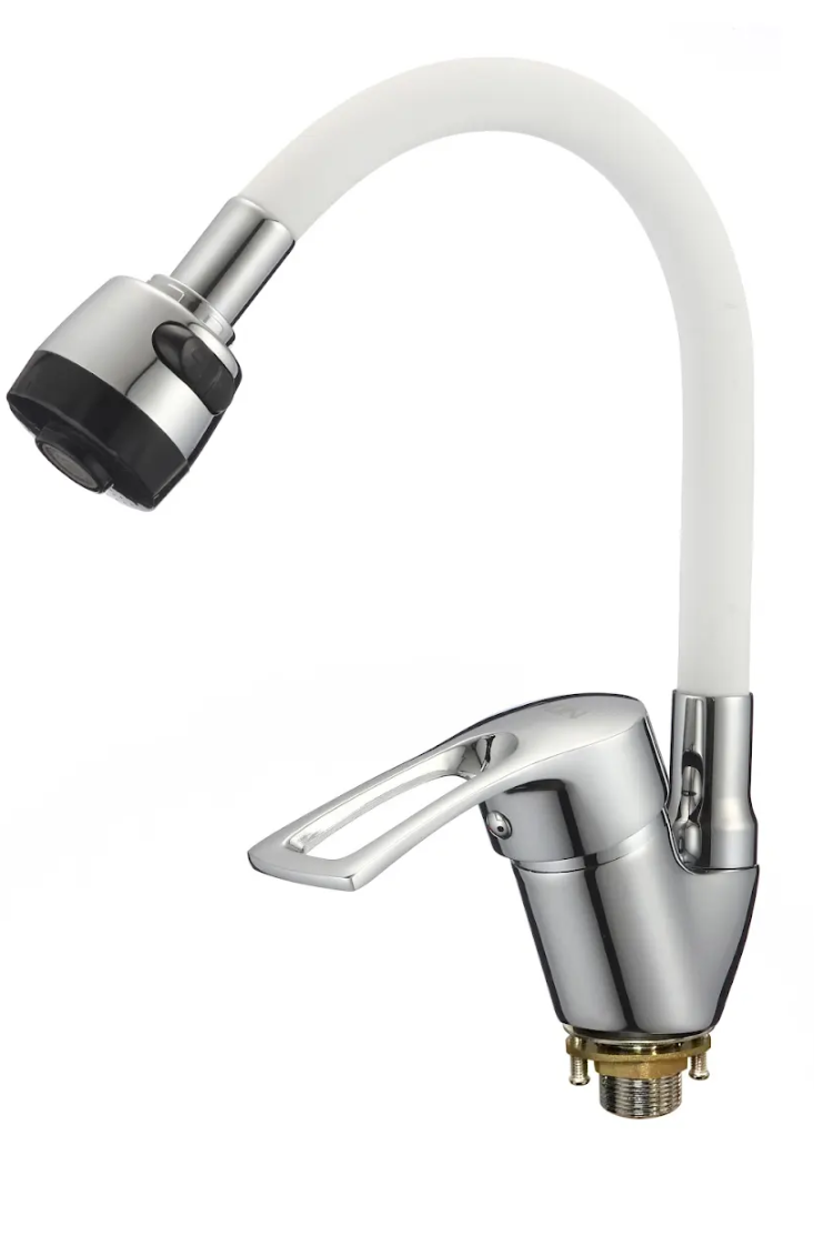 Смеситель для кухни с силиконовым изливом, белый+хром, D-Lin D150422-3T