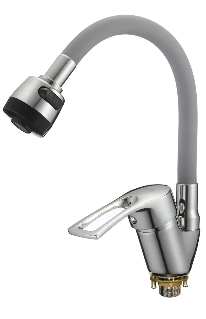 Смеситель для кухни с силиконовым изливом, серый+хром, D-Lin D150422-2T