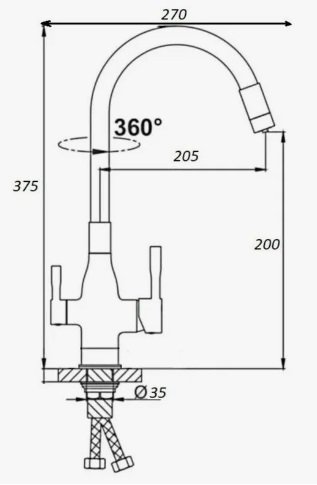 Смеситель для кухни с выдвижным изливом, чёрный, D-Lin D158374-A