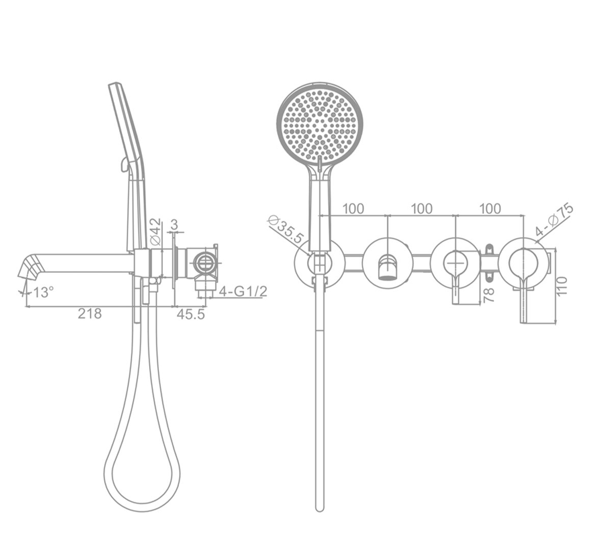 Смеситель встраиваемый с гигиеническим душем, хром Raglo, R07.52