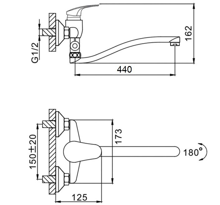Смеситель для ванны с изливом, хром D-Lin D147403-1