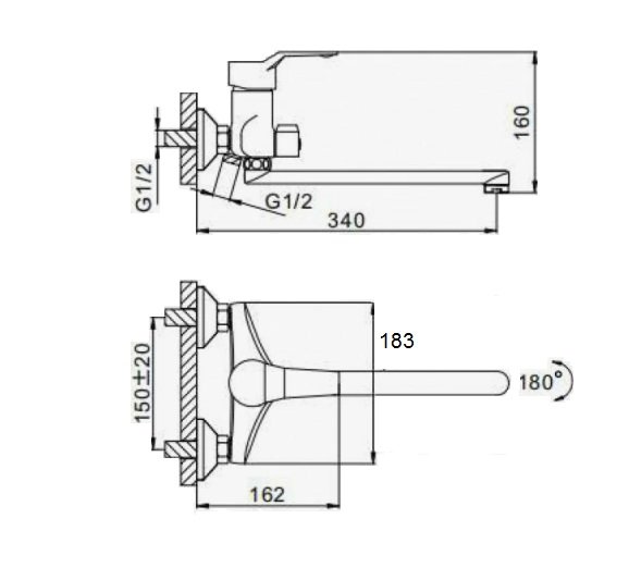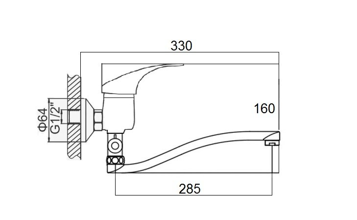 Смеситель для ванны с плоским изливом, хром D-Lin D146305