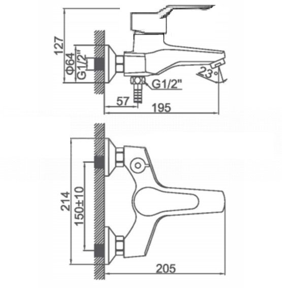 Смеситель для ванны с коротким изливом, хром D-Lin D130403-6