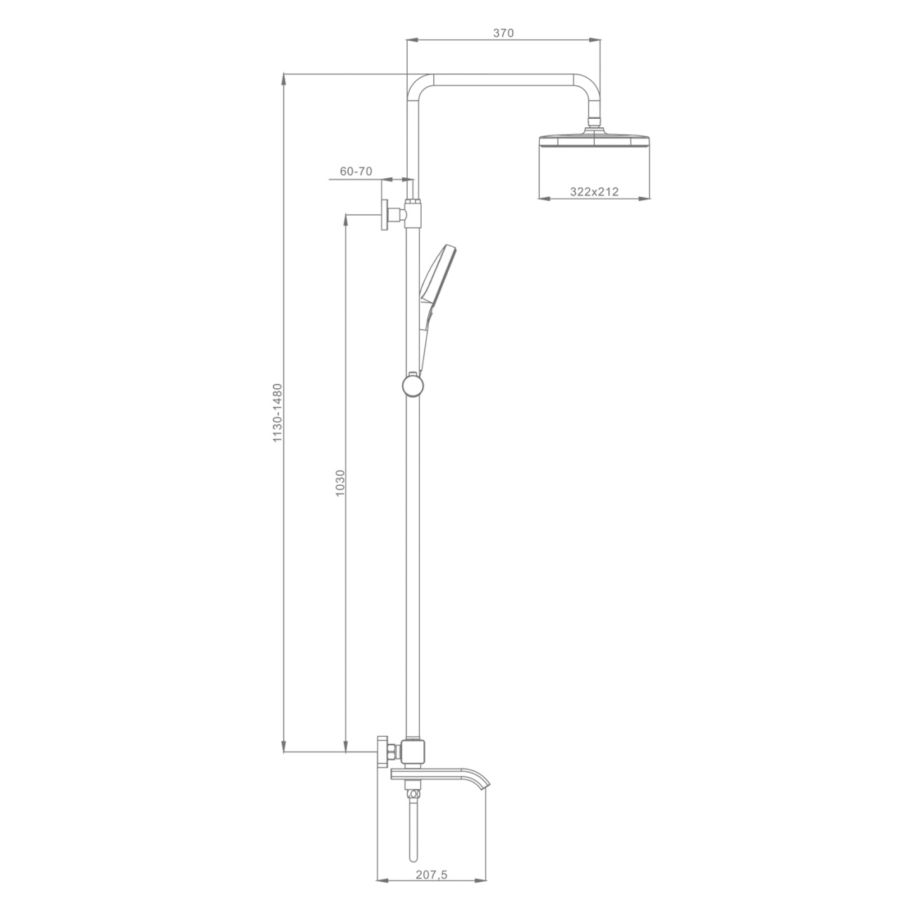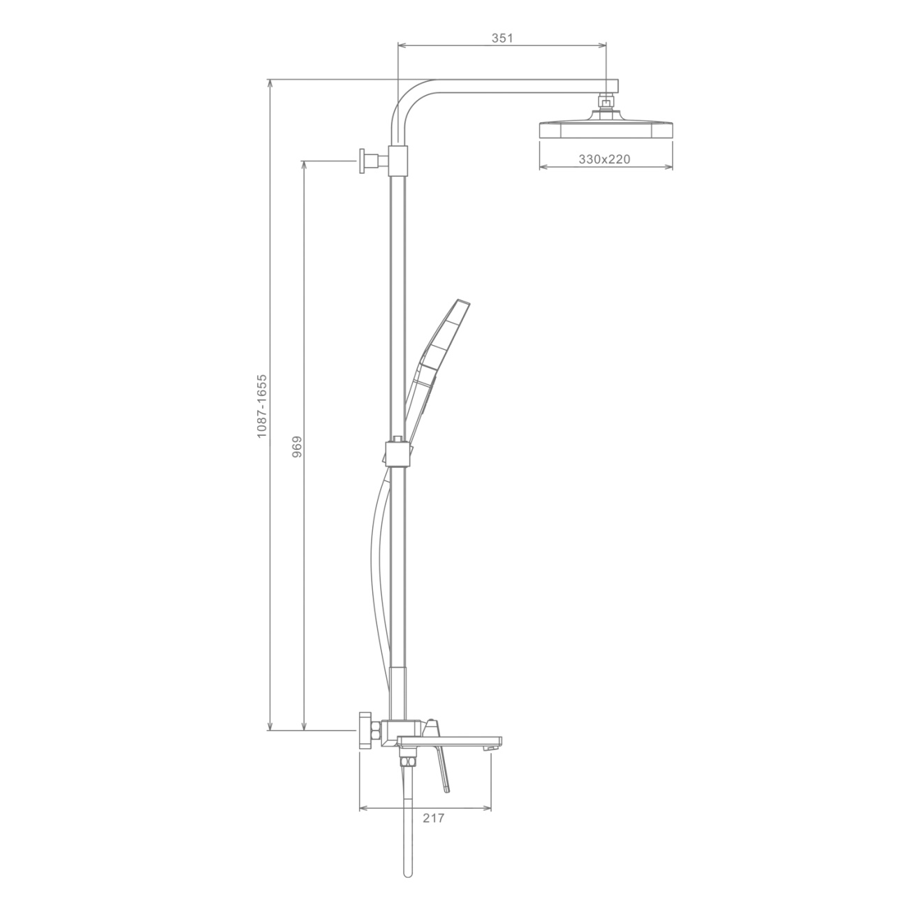 Душевая система с термостатом для ванны, графит Raglo, R22.26.09