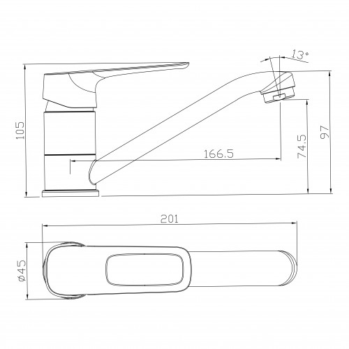 RS29-52 Смеситель одноручный (35мм) с гигиеническим душем, хром