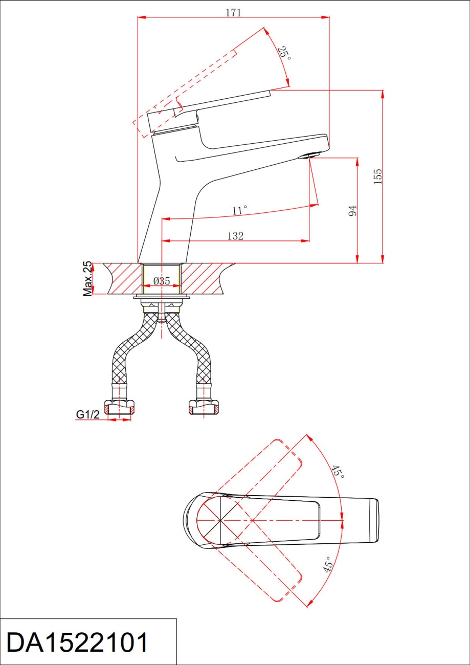 DA1522101 Смеситель для раковины, хром