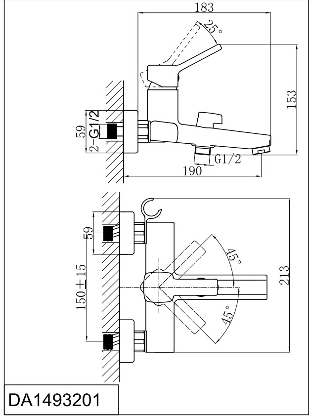 DA1493201 Cмеситель для ванны с душем, короткий излив, хром