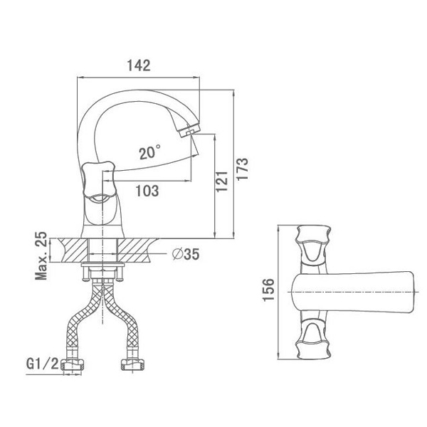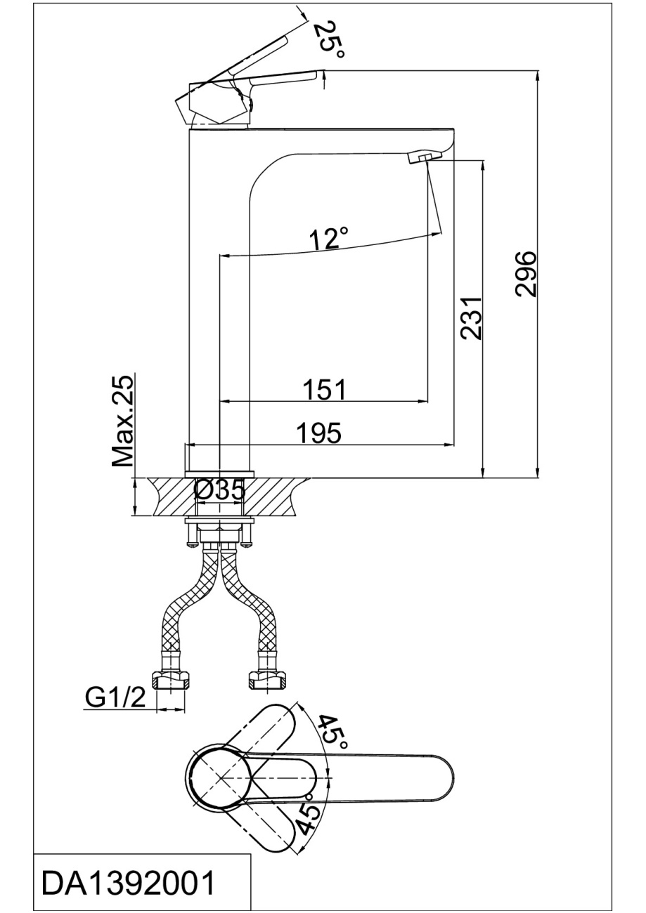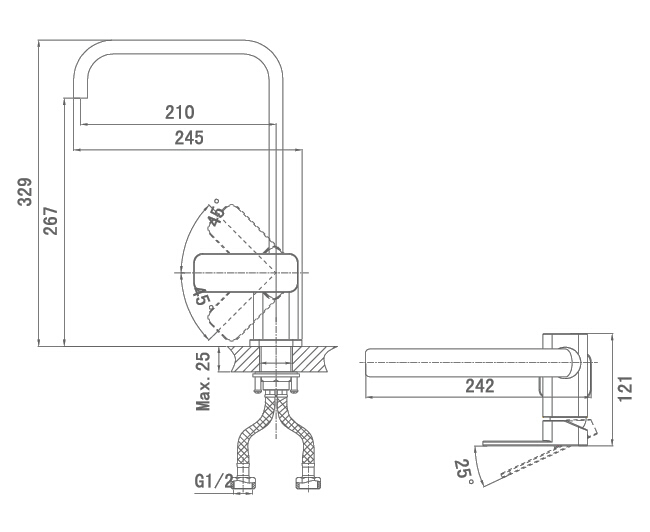 DA1462301 Смеситель для кухни однорычажный, с поворотным изливом