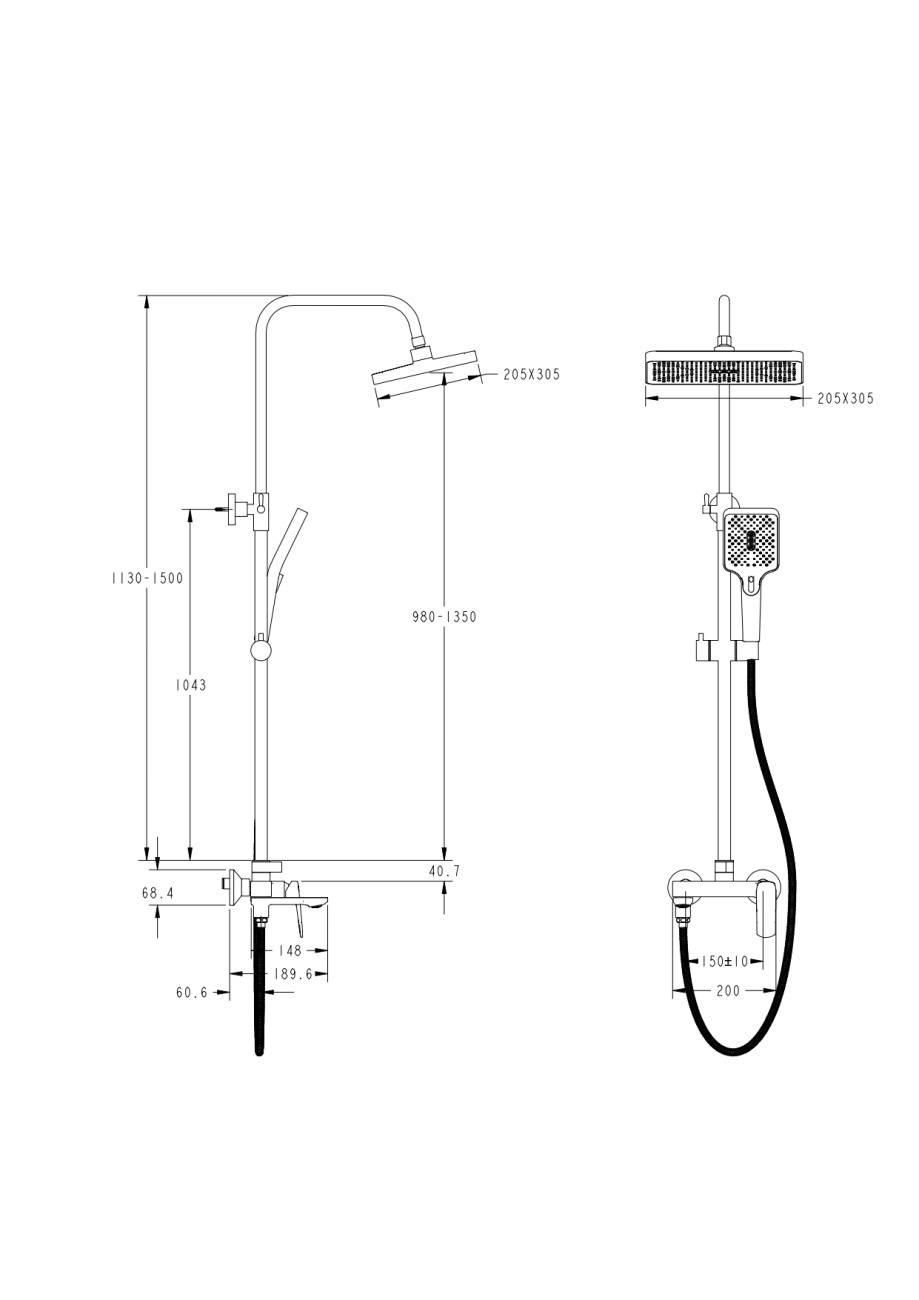 Душевая система для ванны VANT AV6340B, цвет чёрный