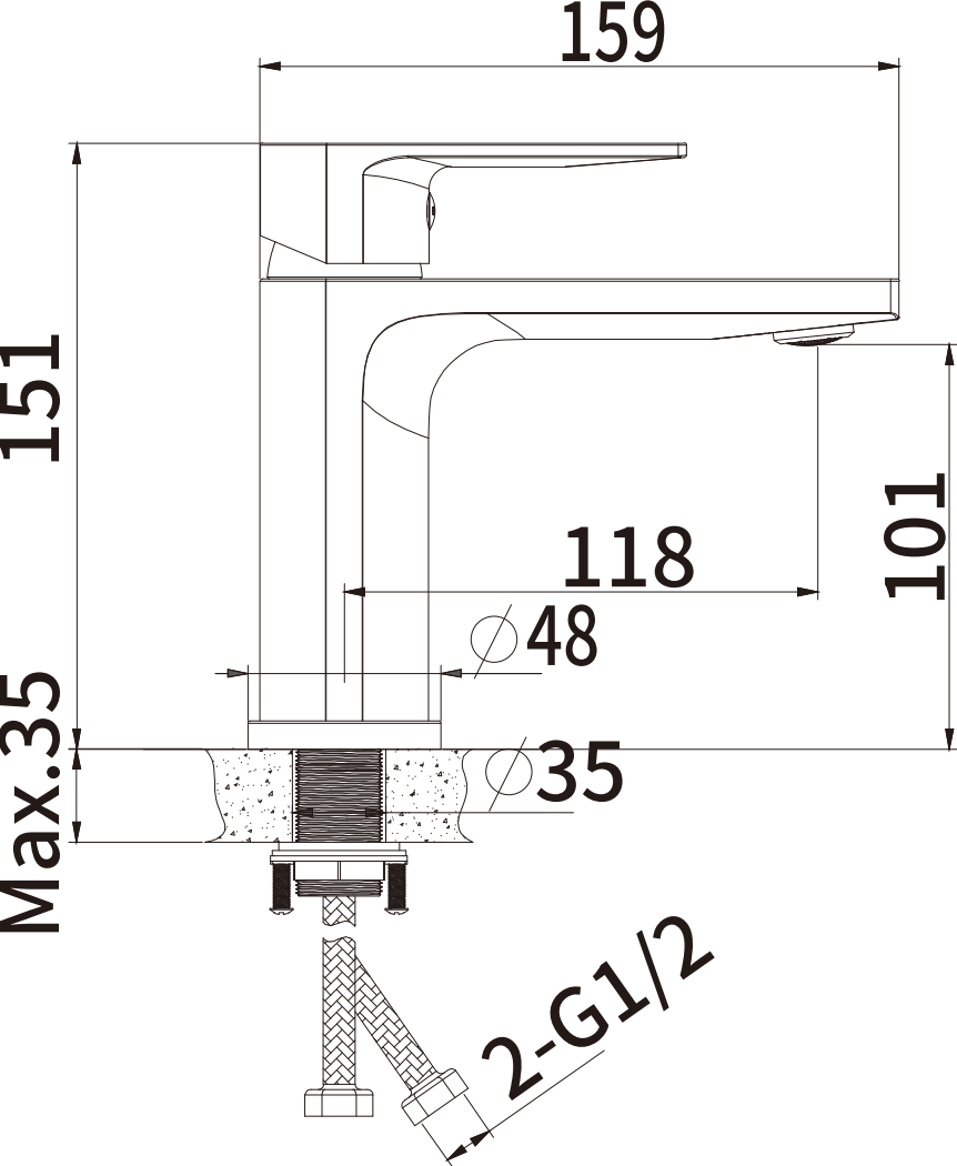 Смеситель для умывальника AVRORA Gamma AV5410 монолитный