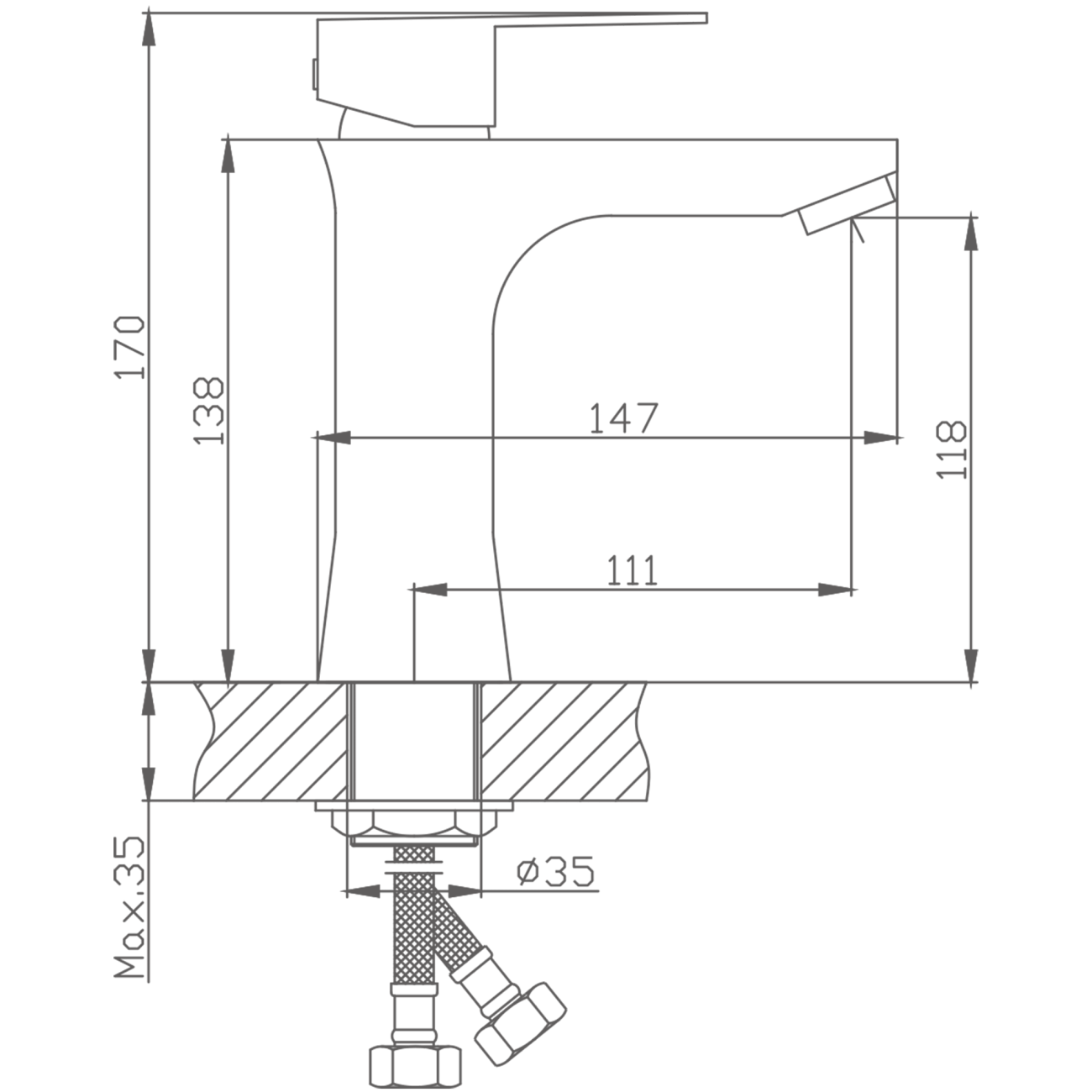 HB11590-7 Однорычажный смеситель для раковины d35 латунь черный