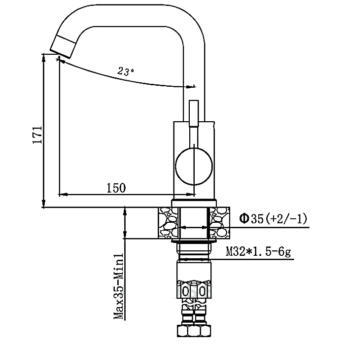 HB72304-4 Смеситель для кухни из нержавеющей стали, d35