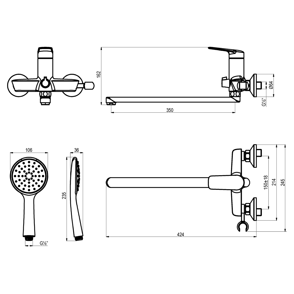 "Верба" LM11419C Смеситель с гигиеническим душем, встраиваемый, хром