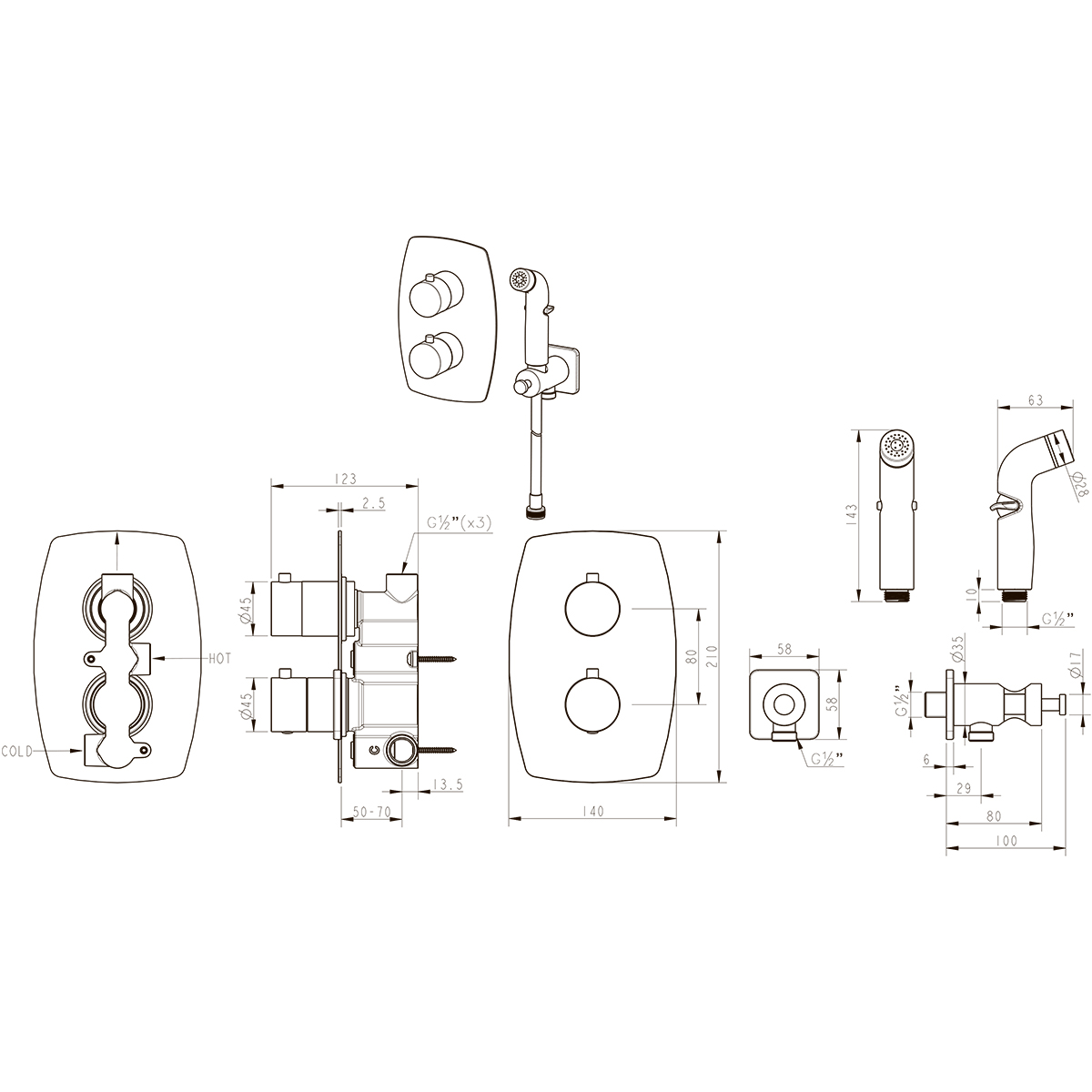 "Соло" LM7174C Смеситель с гигиеническим душем, встраиваемый, хром