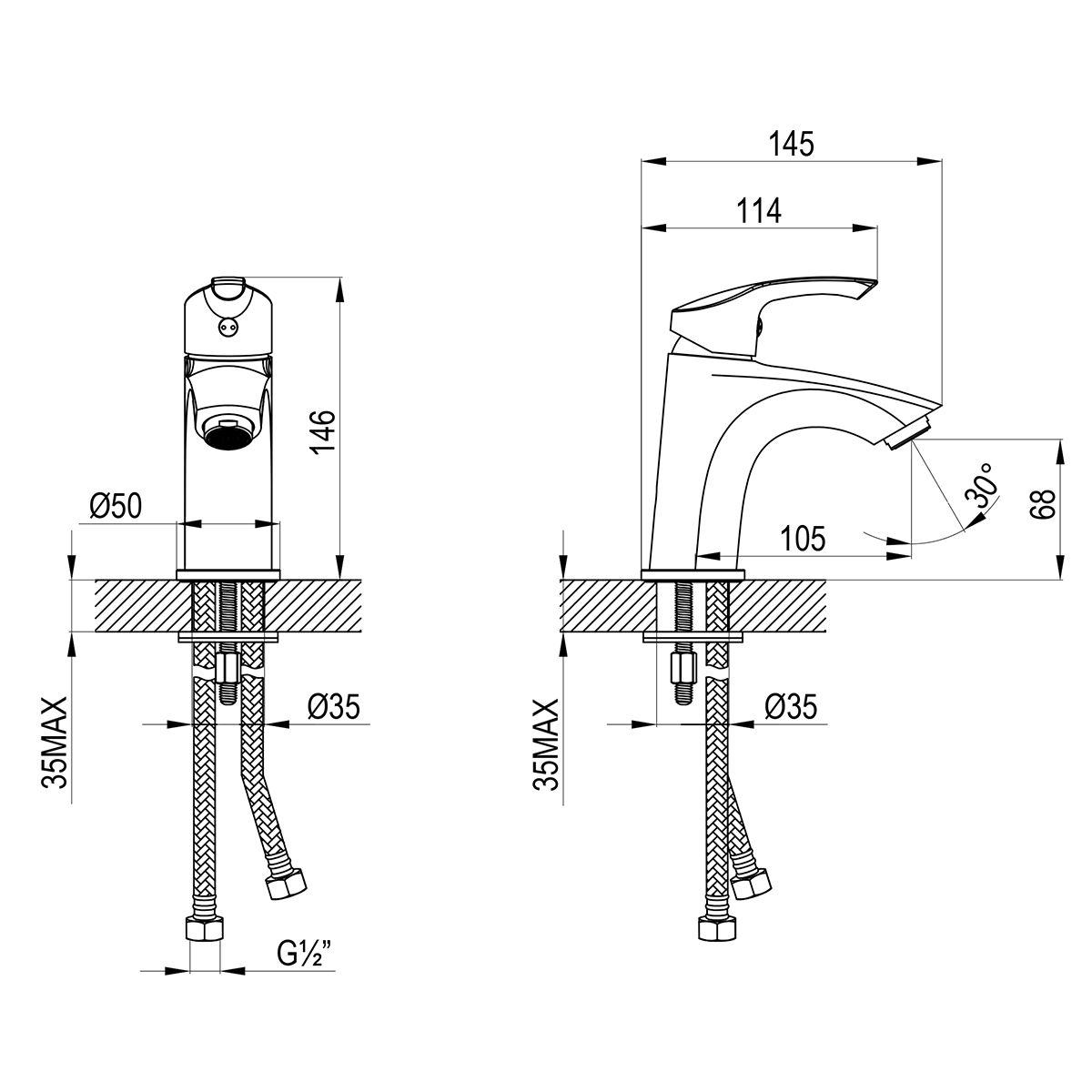 "плюс Страйк" LM1131C Смеситель для умывальника, монолитный, хром