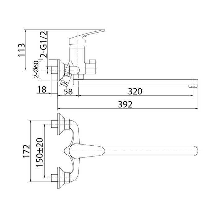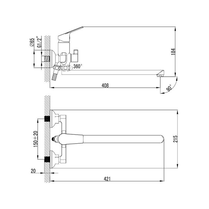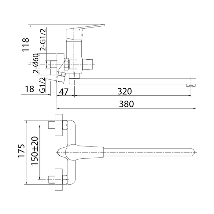Смеситель для ванны с длинным изливом, Horizont, Milardo, HORSB02M10