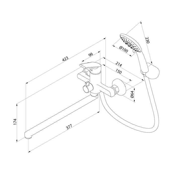 Смеситель для ванны с длинным изливом, Helic, Milardo, HELSB02M10