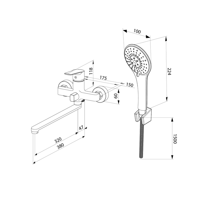 Смеситель для ванны с длинным изливом, Simp, Milardo, SIMSB02M10