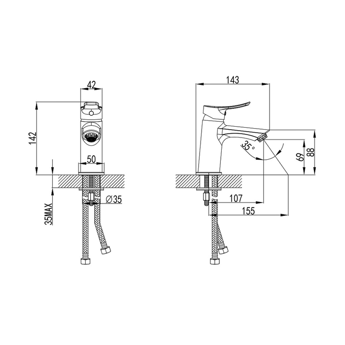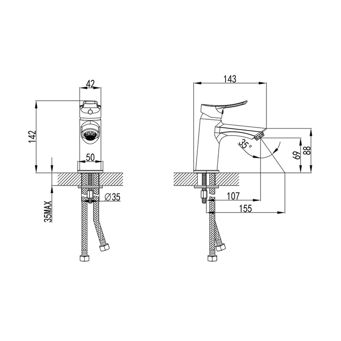 Смеситель для умывальника, Amplex, Milardo, AMPSB00M01