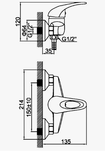 Смеситель Prohanss для душа, хром Prohanss P64.20
