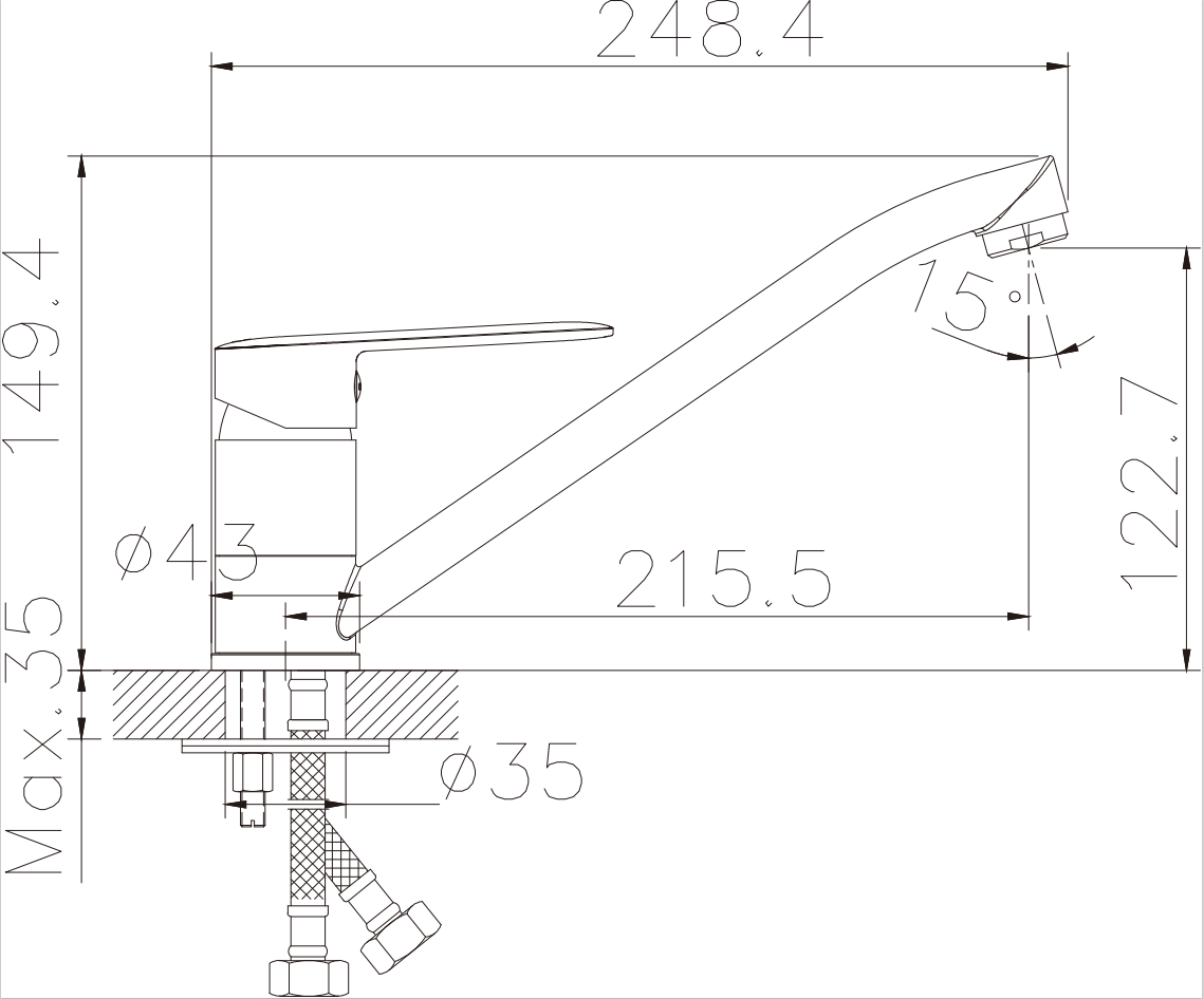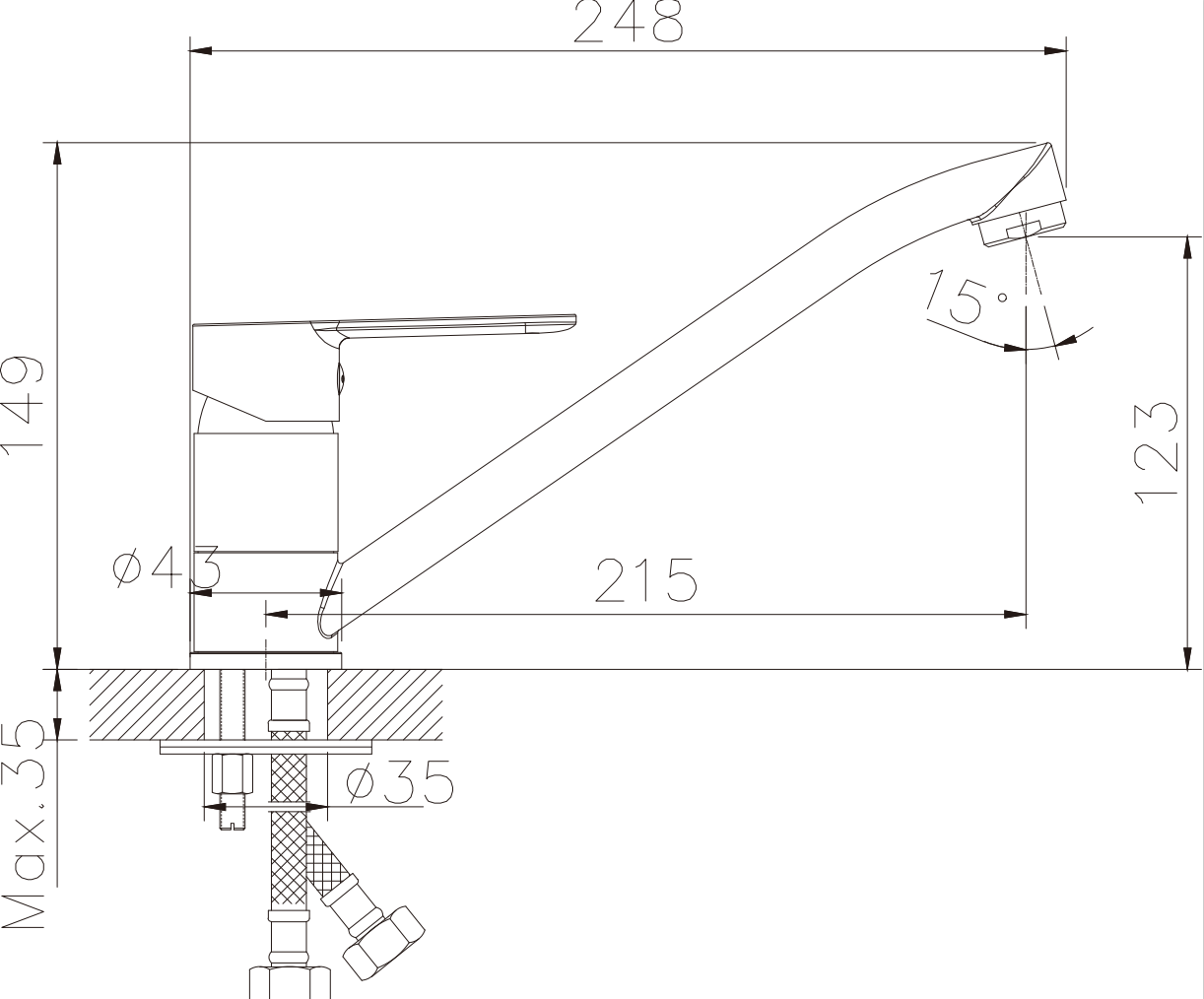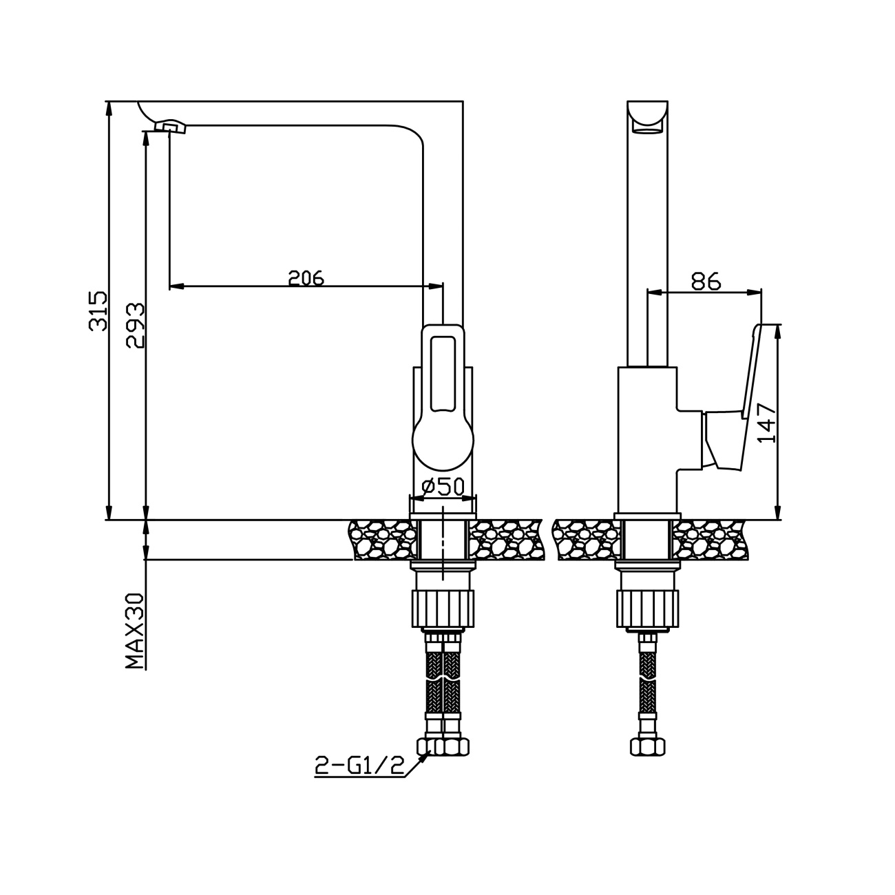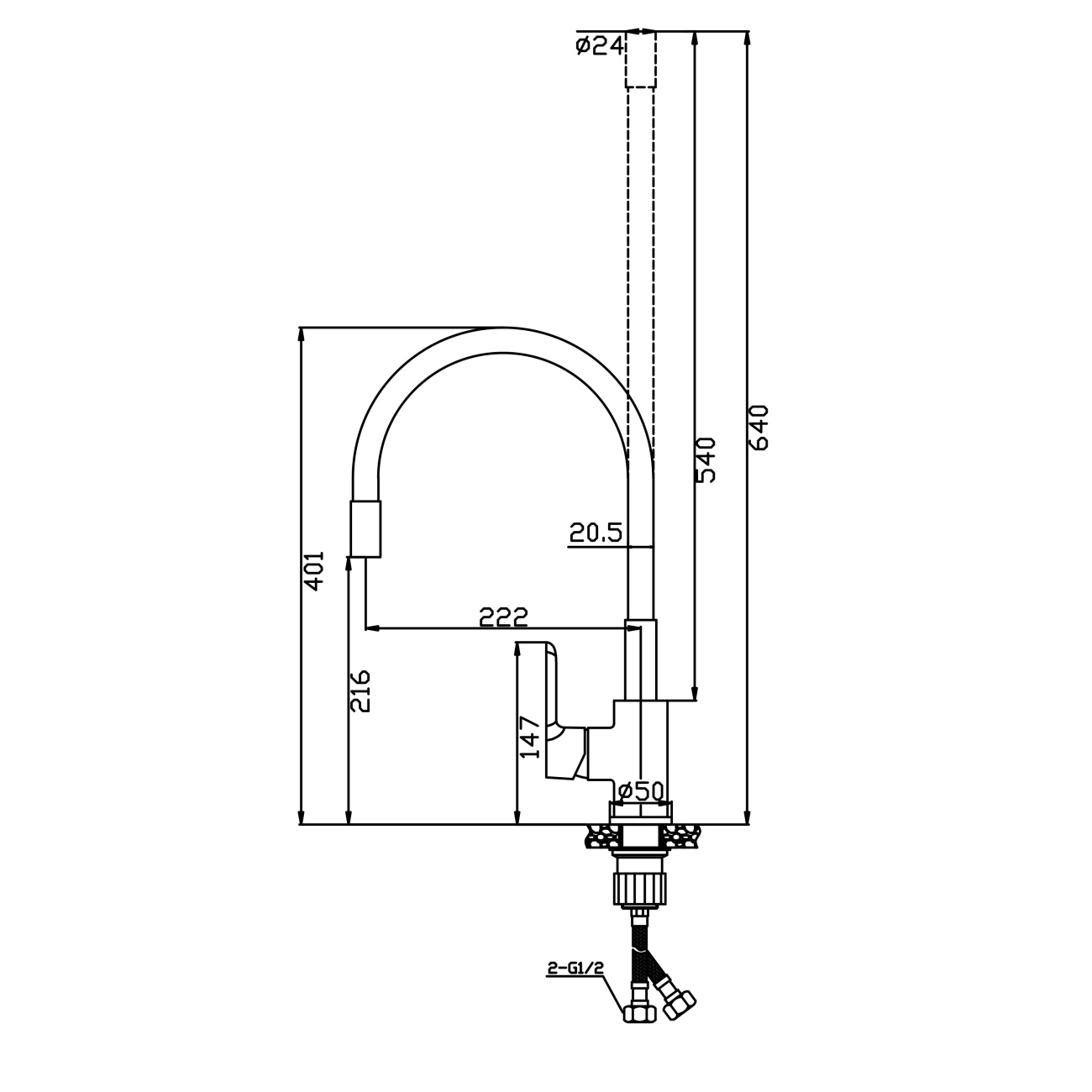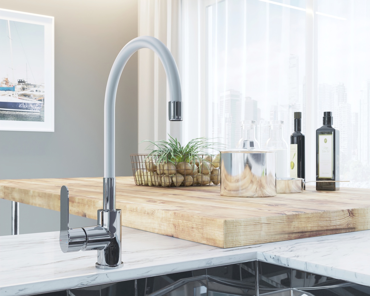 Смеситель для кухни KITCHEN AV9001 с гибким изливом, цвет хром