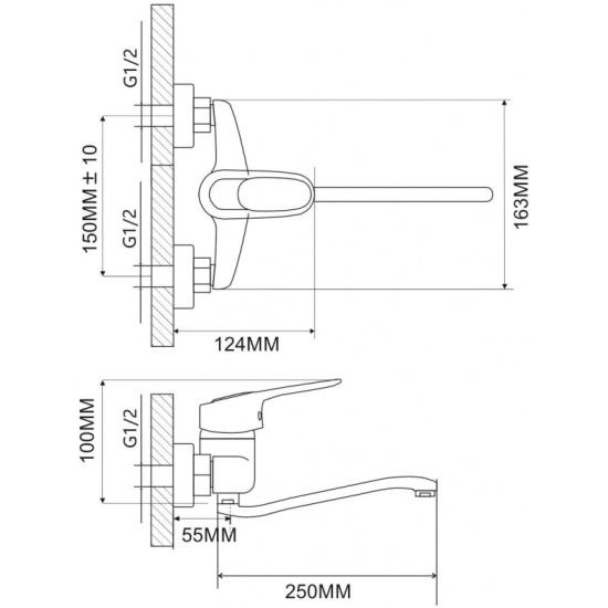 A4140 Смеситель для кухни настенный с изливом 250 мм, хром