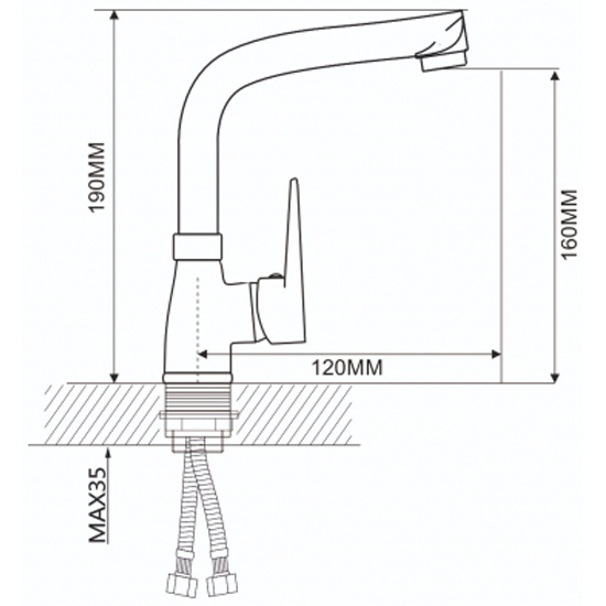 A5440 Смеситель для кухни с поворотным изливом, с гайкой, хром