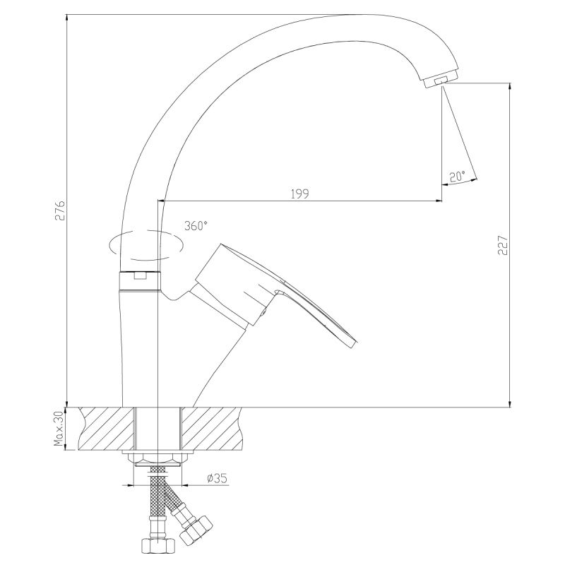 B35-22 (B35-22U) Смеситель для кухни с поворотным изливом 150 мм, хром
