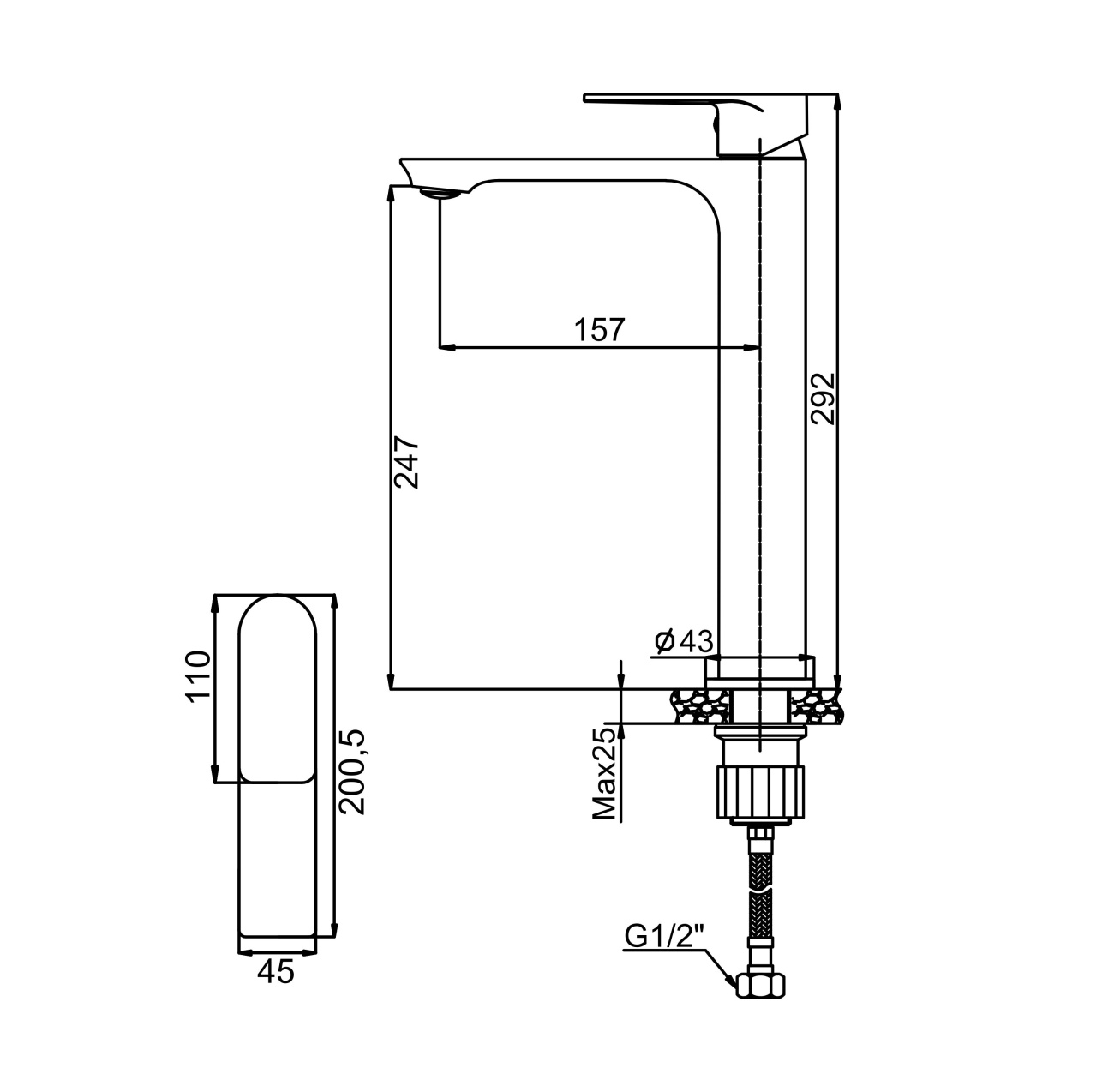 Смеситель для умывальника AVRORA Line AV3110 монолитный