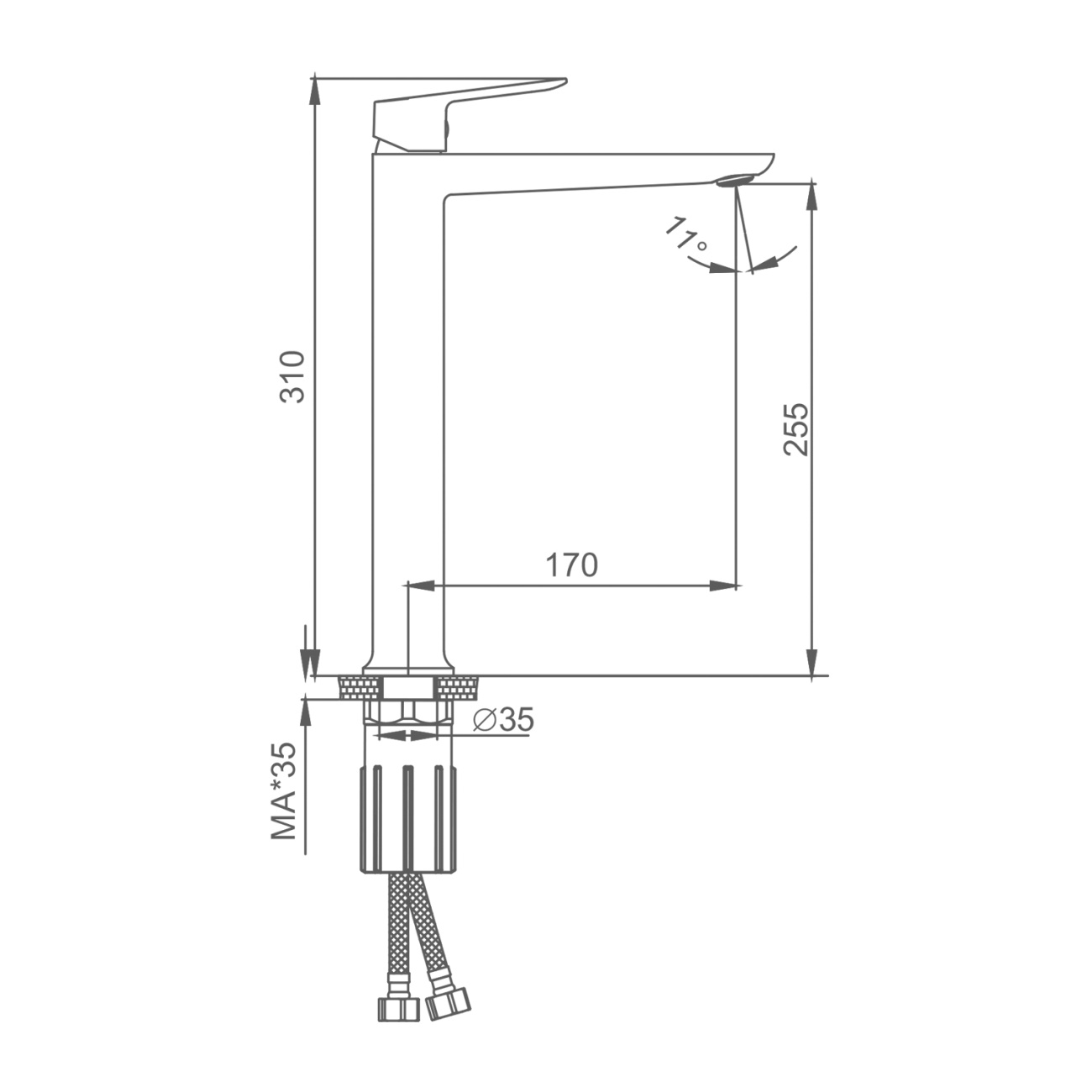 Смеситель высокий для умывальника, графит Splenka, S222.15.09