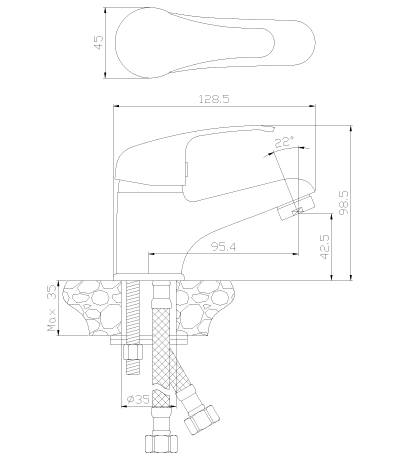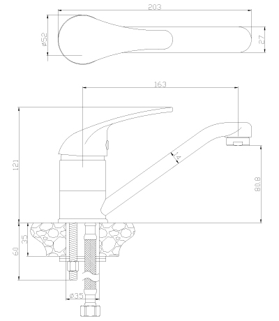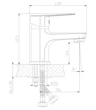 S35-11 Смеситель одноручный для умывальника монолитный, хром