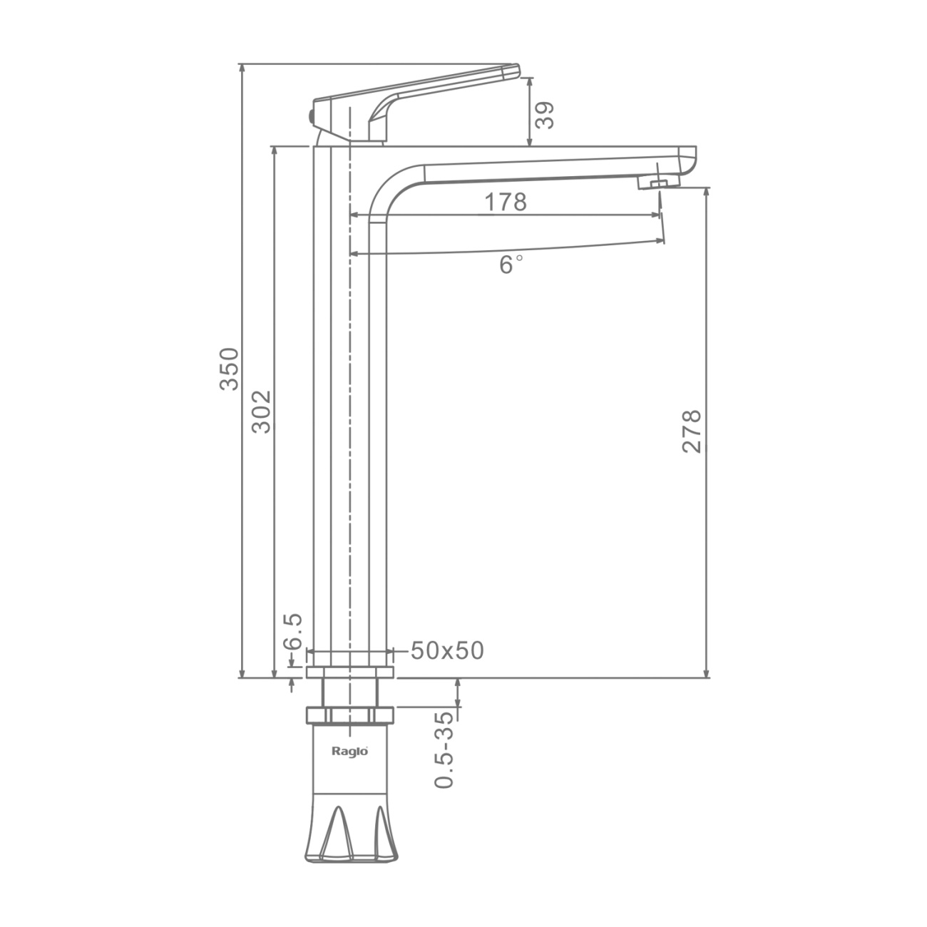 Смеситель высокий для умывальника, хром Raglo, R51.15