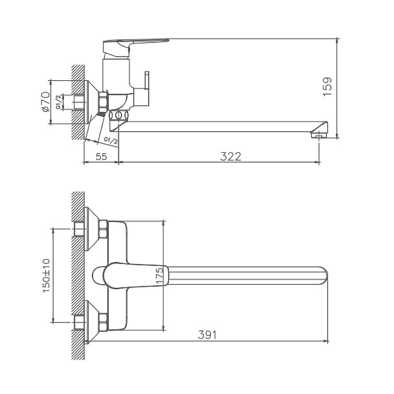 HB60198 Смеситель для ванны с коротким изливом