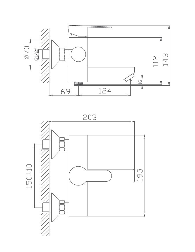 HB60590-7 Смеситель для ванны короткий излив, латунь, черный