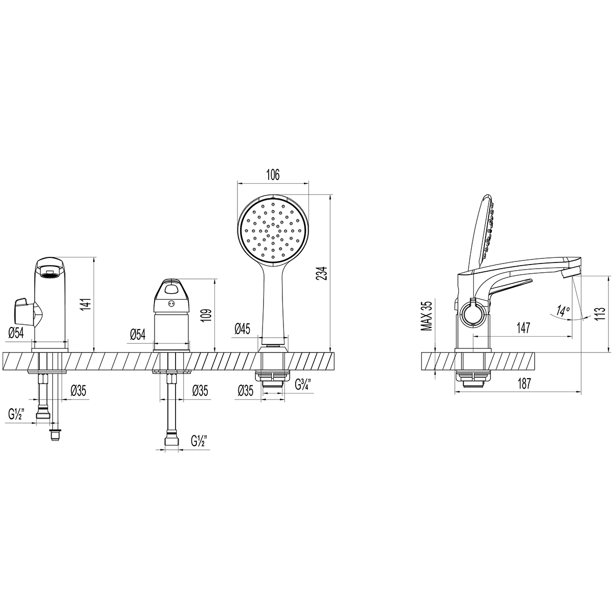 "Луна" LM4147C Смеситель на борт ванны