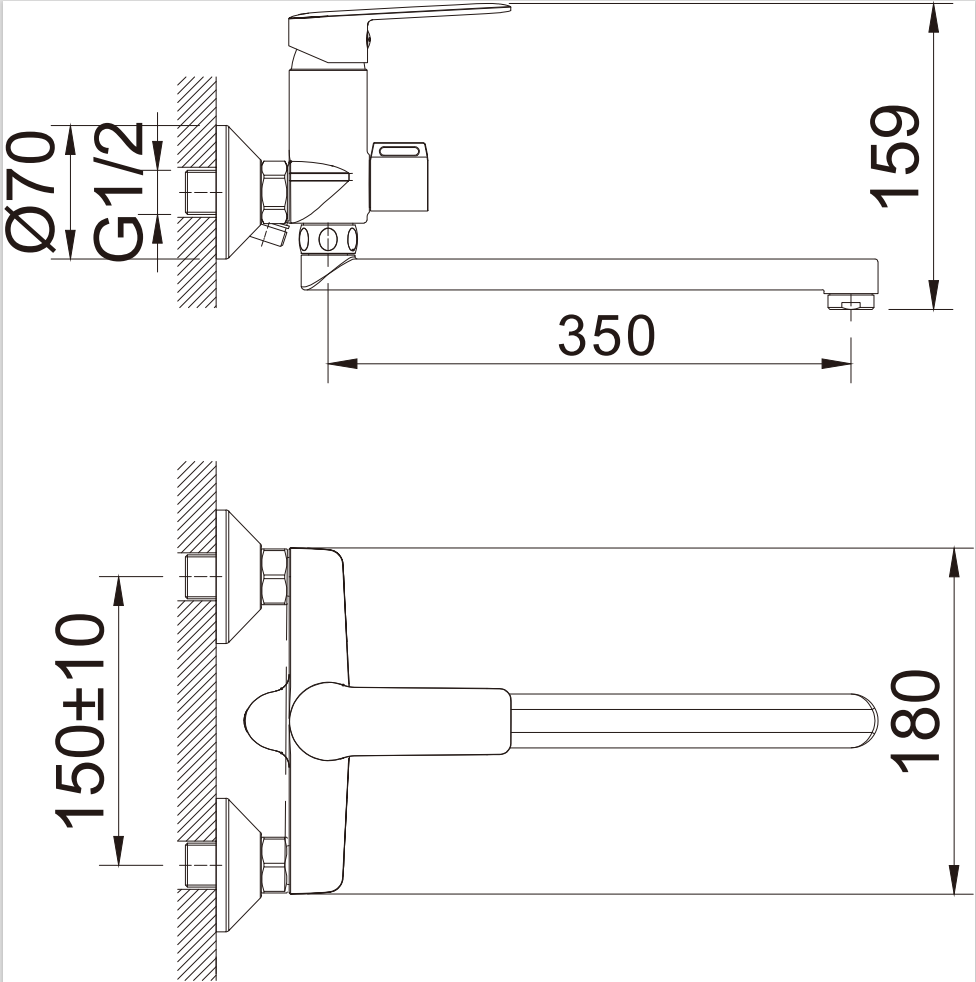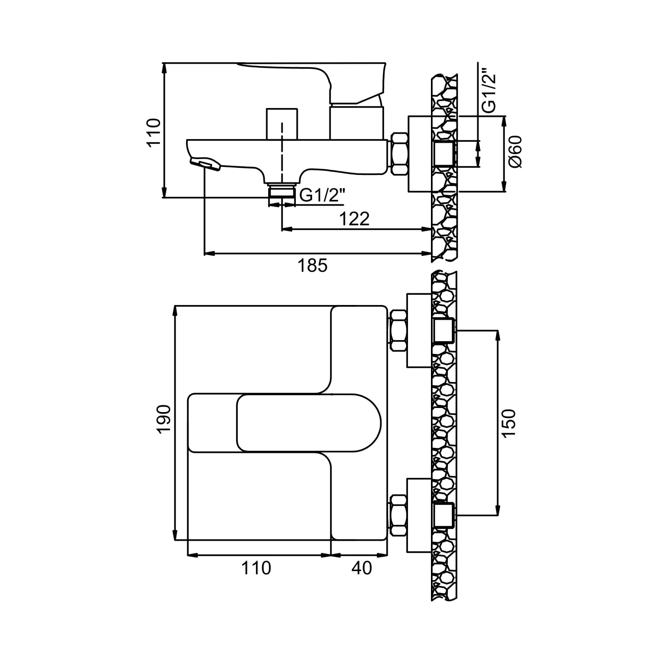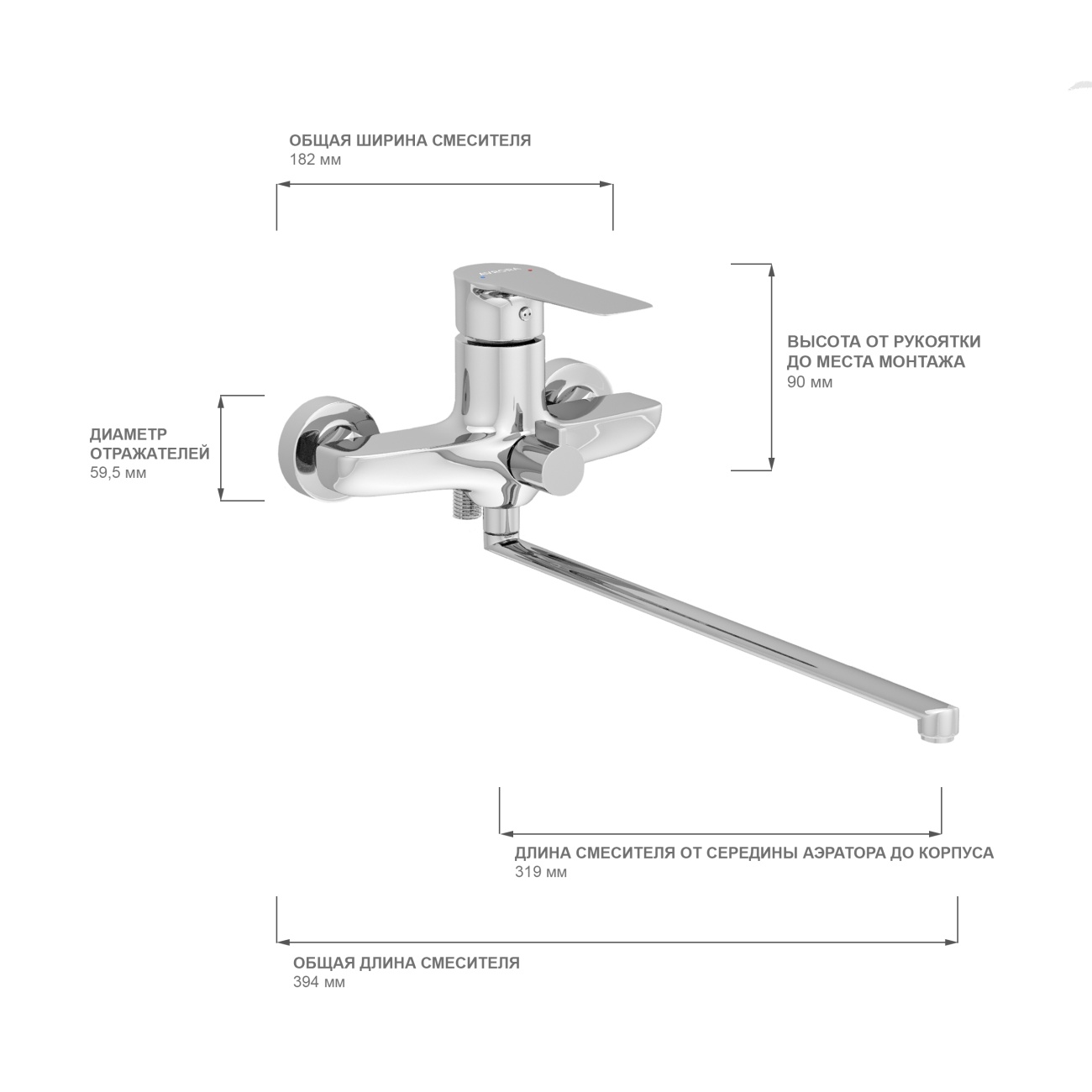 Смеситель для ванны LINE AV3131 c монолитным изливом, цвет хром