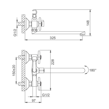 Смеситель универсальный для ванны, хром Splenka, S06.22