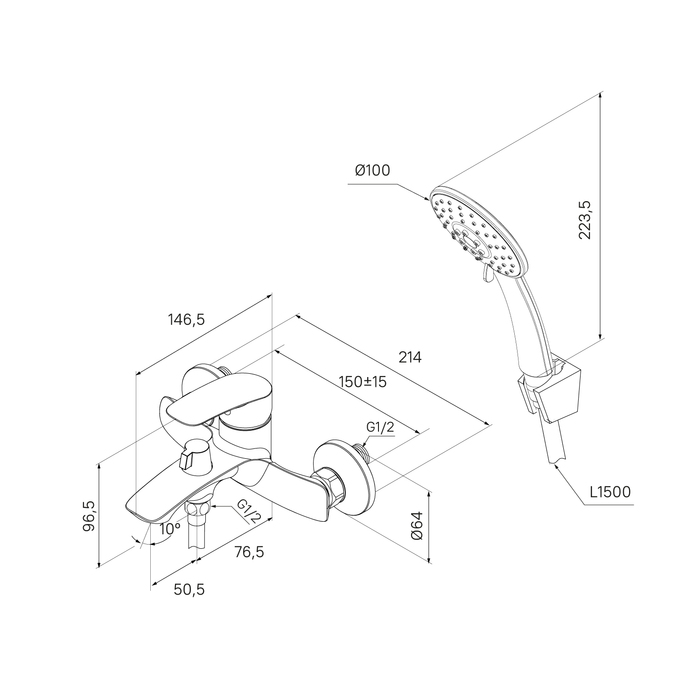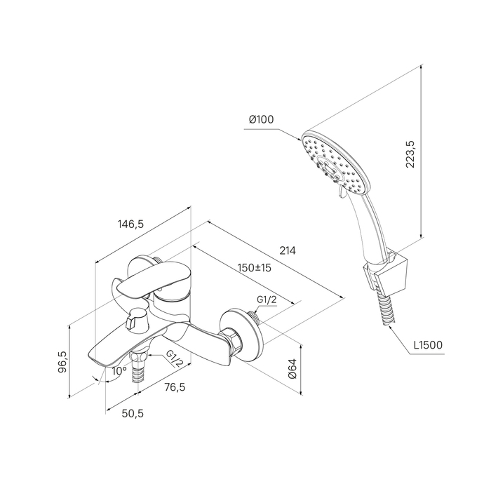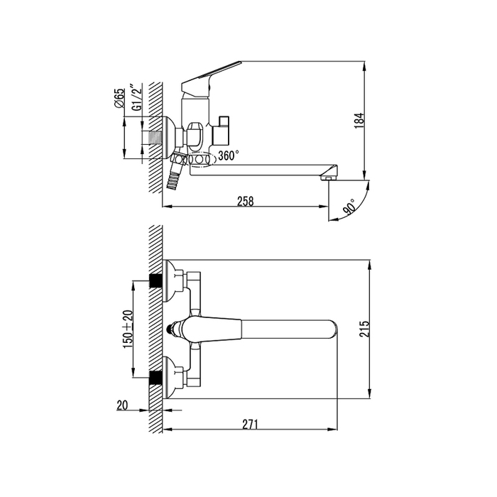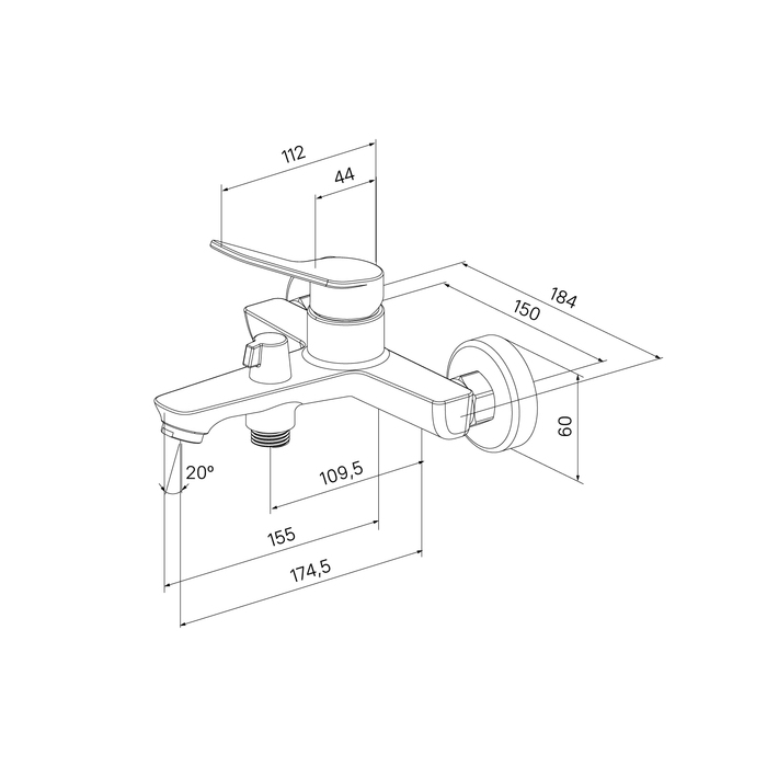 Смеситель для ванны, глянцевый хром, Enjoy, Milardo, ENJSB00M02