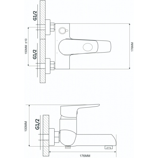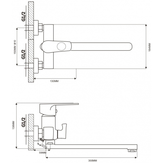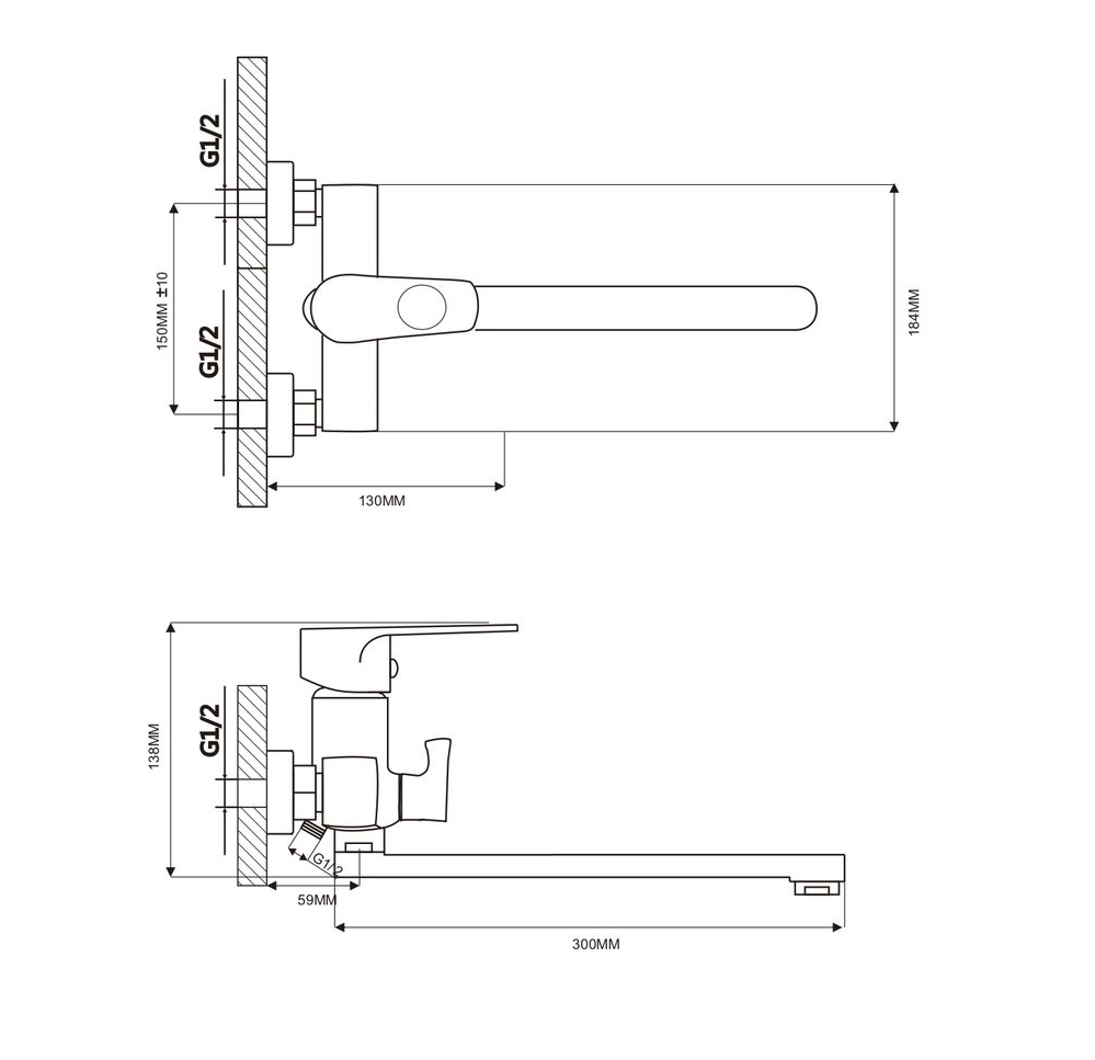 Смеситель для ванны с изливом 300мм, хром Ammore A4040