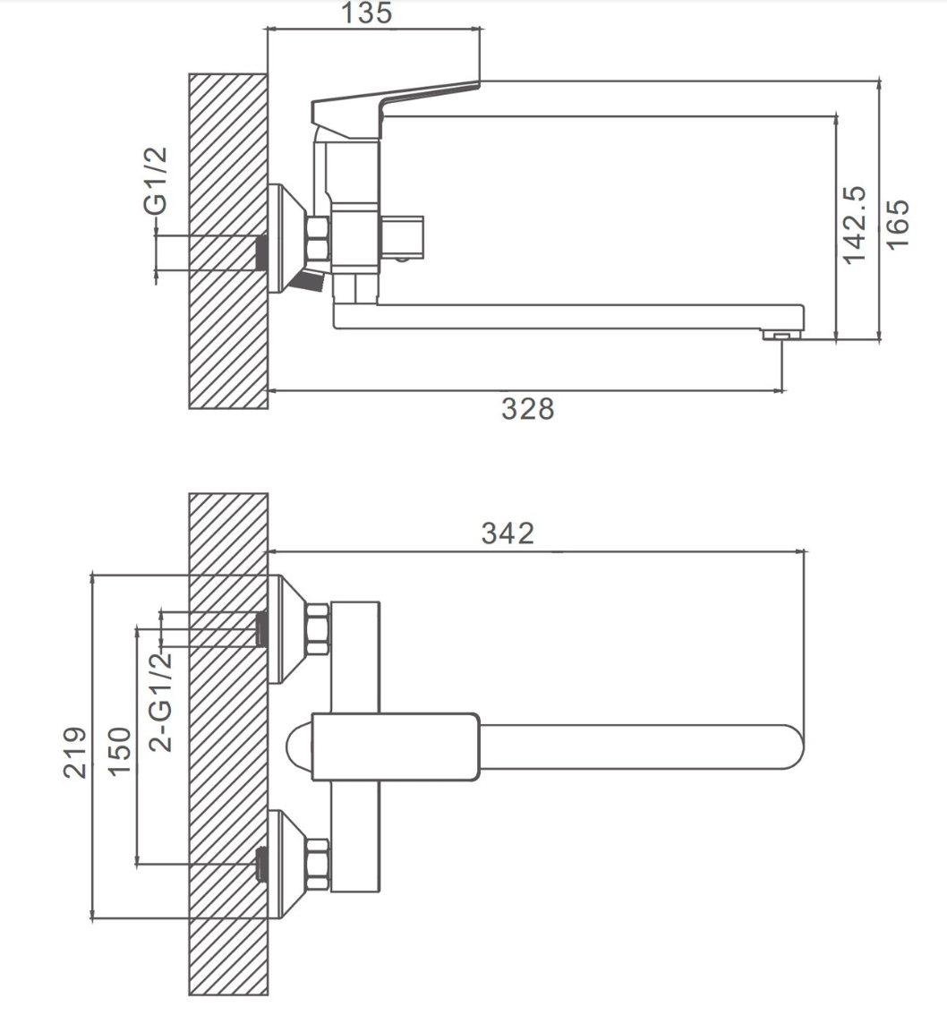 A4702 Смеситель для ванны с изливом 300 мм, хром