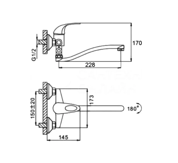 Смеситель для ванны с изливом, хром D-Lin D147456-6