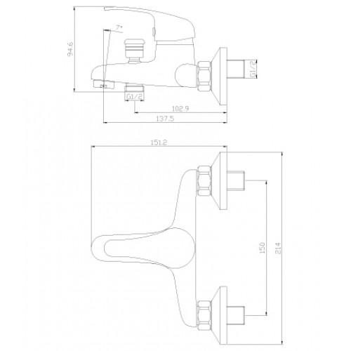 DR21035 Смеситель одноручный для ванны с коротким изливом, хром