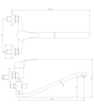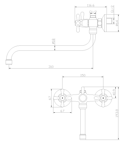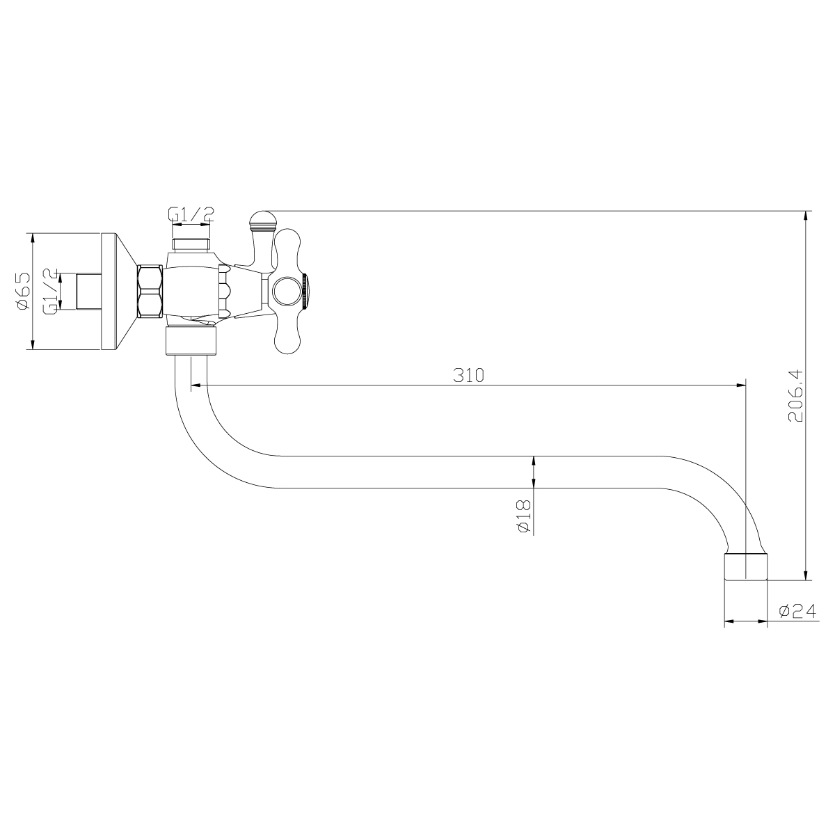 Y02-82 Смеситель универсальный с круглым изливом 310 мм, хром