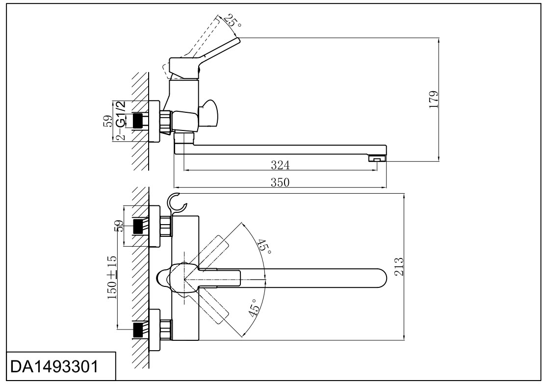 DA1493301 Смеситель для ванны с душем длинный излив хром