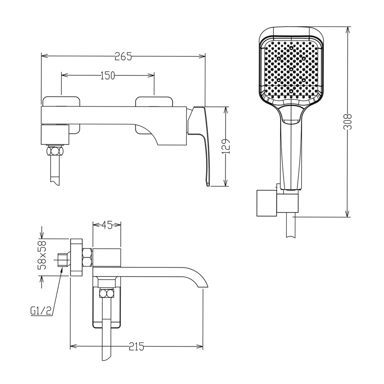 Смеситель для ванны и душа, черный Raglo, R02.30.06