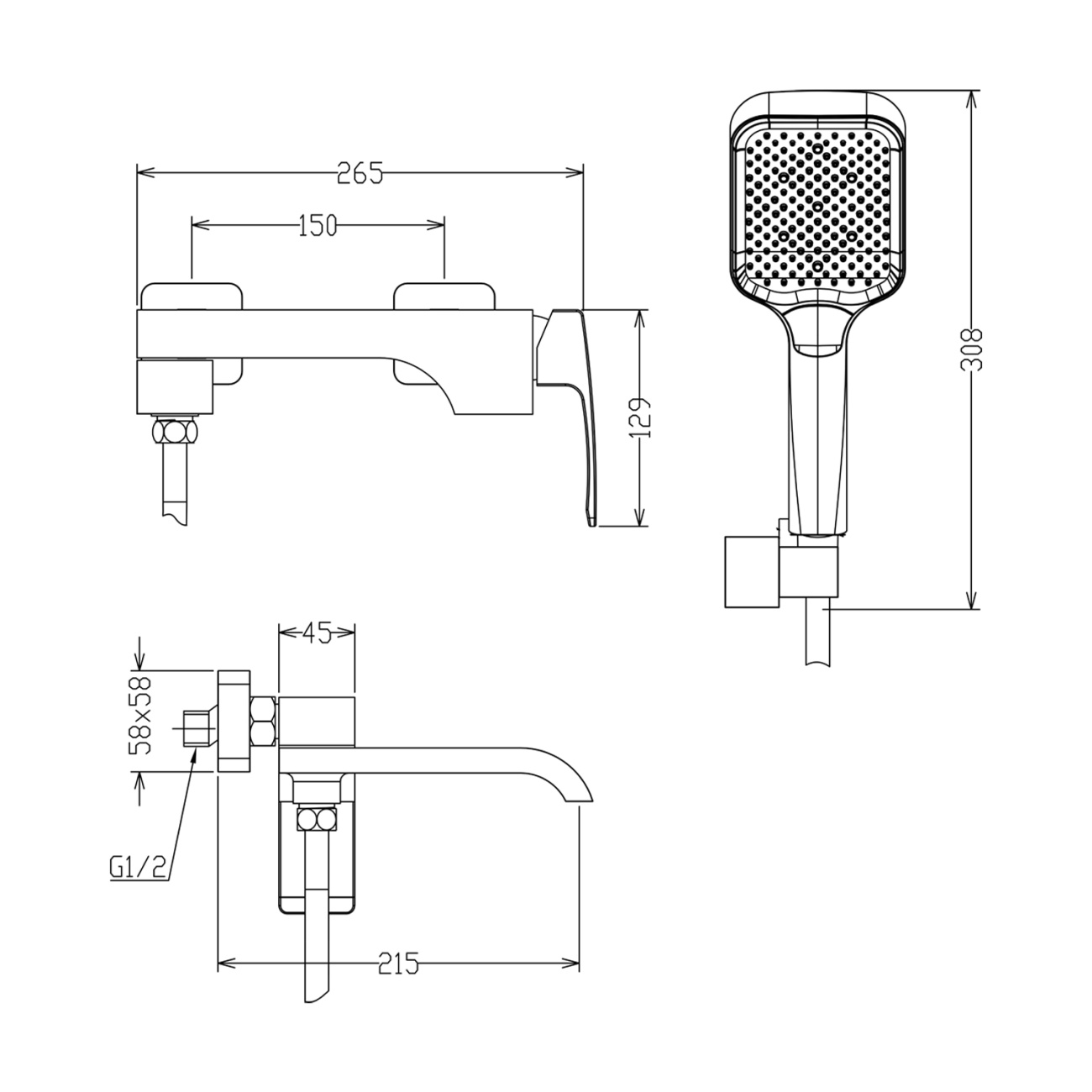 Смеситель для ванны и душа, графит Raglo, R02.30.09