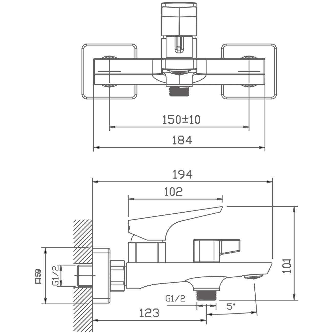 Смеситель для ванны и душа, хром Raglo, R02.30