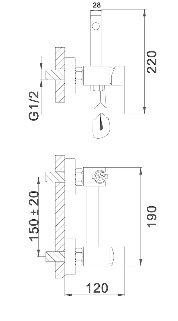 Смеситель с гигиеническим душем, графит D-lin D180202-S