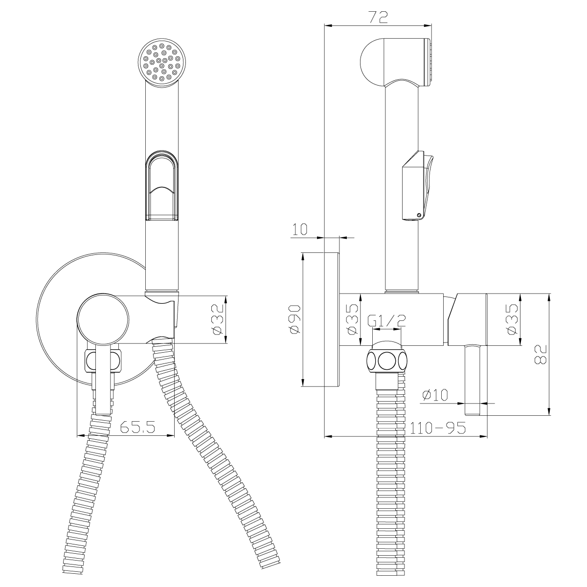 B35-52 Смеситель одноручный (35 мм) с гигиеническим душем, хром